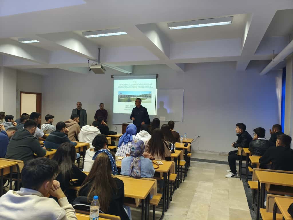 Okulumuzun 2025 – 2026 Eğitim – Öğretim yılı oryantasyon çalışması 30.09.2025 Salı günü saat 13:30’da yapıldı. Oryantasyon çalışması Meslek Yüksekokulu Müdürümüz Doç.Dr. Murat Tekbaş yönetiminde okulumuz öğretim elemanları Öğr.Gör.Dr. Hacer Arıol, Öğr.Gör. Turgay Taymaz, Öğr.Gör. Kadir Çıray ve Öğr.Gör Ahmet Ertuğrul katılımıyla gerçekleştirildi. Oryantasyon çalışmasında okulumuza yeni katılan öğrencilerimize üniversite yaşamı hakkında aşağıda belirlenen konularda bilgilendirme yapıldı: