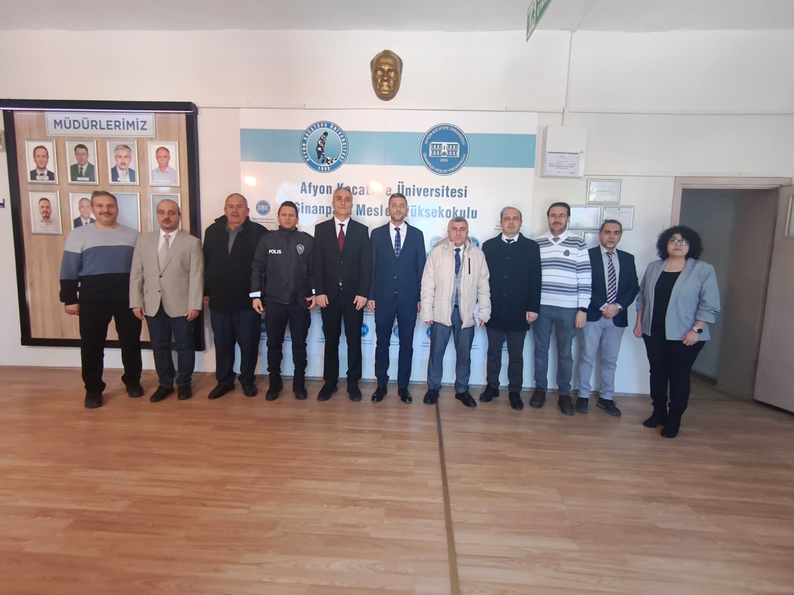 Yüksekokul Müdürümüz Doç. Dr. Murat Tekbaş başkanlığında düzenlenen toplantıya; Müdür Yardımcıları Öğr. Gör. Dr. Yasin Çiçek ve Öğr. Gör. Turgay Taymaz, Çevre Koruma ve Teknolojileri Bölüm Başkan Vekili Öğr. Gör. Kadir Çıray, Öğretim Görevlileri Dr. Hacer Ariol ve Ahmet Ertuğrul katıldı. Toplantıda kurulun üniversite dışı paydaş üyeleri olan Sinanpaşa Belediye Başkanı Tolga Yıldırım, İlçe Emniyet Amiri Seyit Çelik, İlçe Milli Eğitim Müdürü Yasin Duru, Gençlik ve Spor İlçe Müdürü İsmail Arık ve Ziraat Odası Başkanı Zafer Kahraman da hazır bulundu.