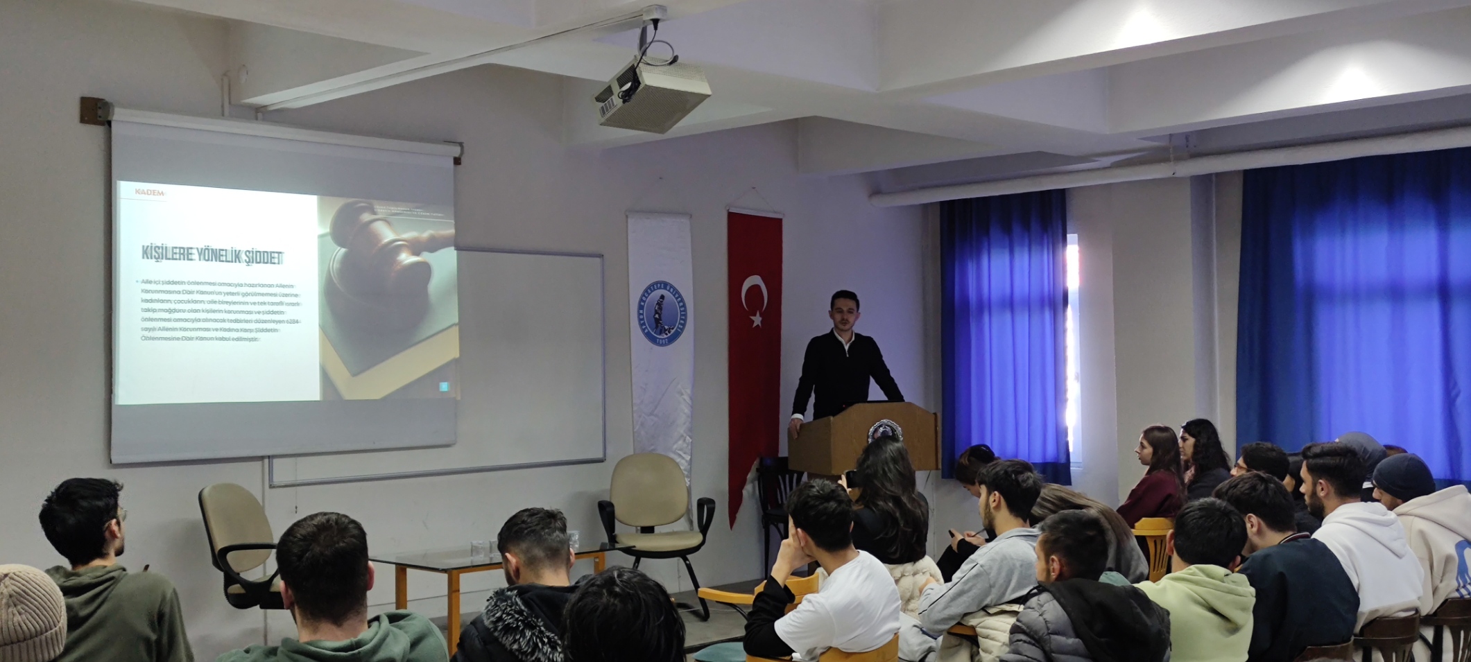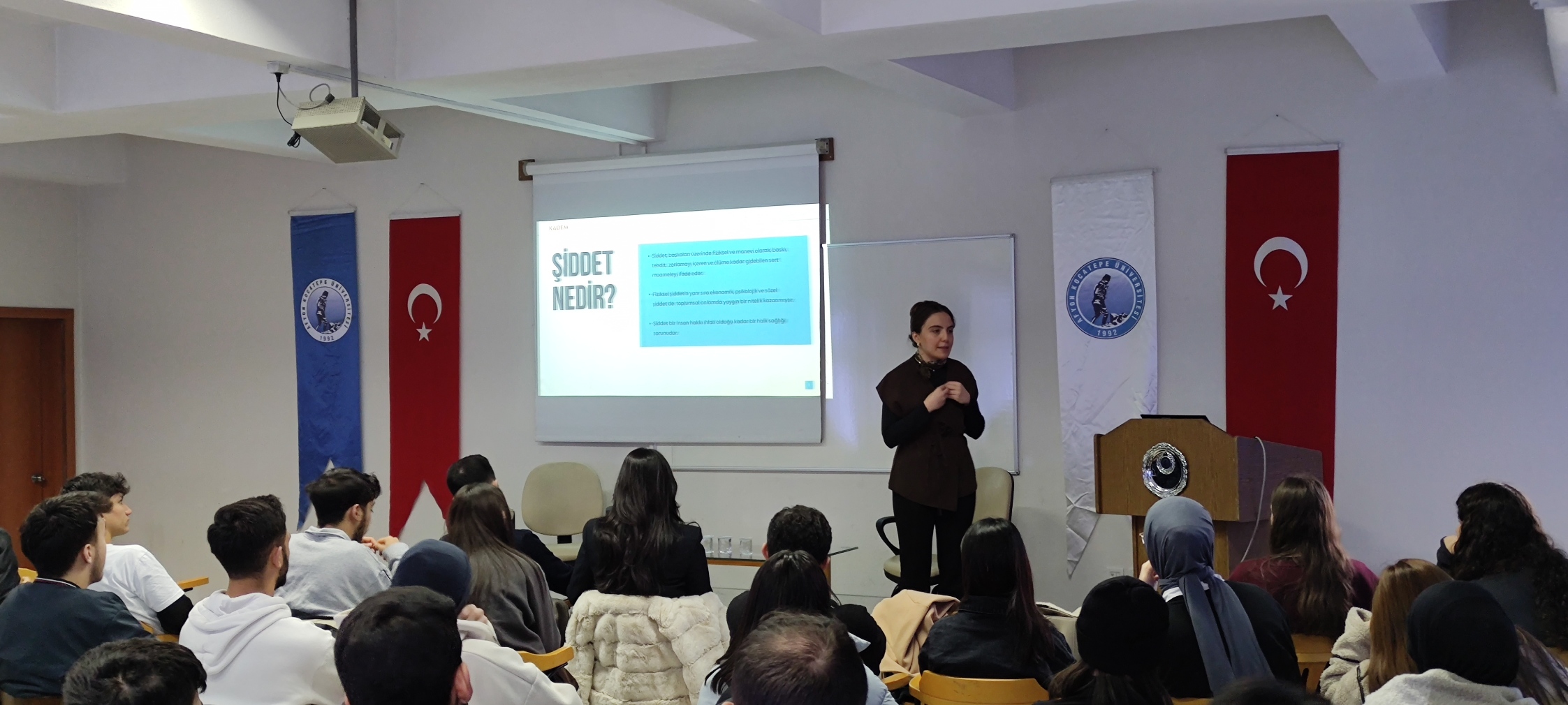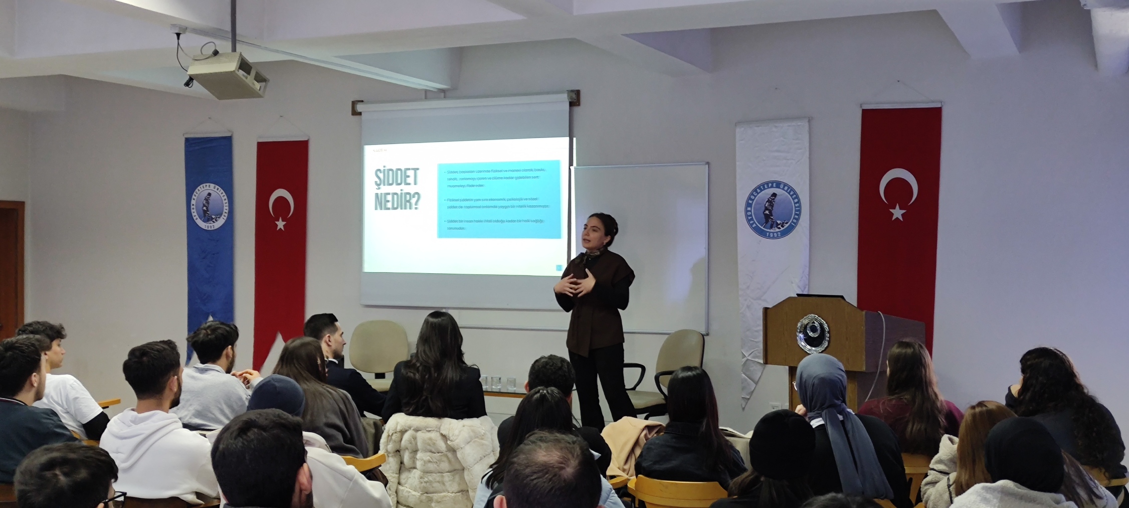 Seminerde şiddetin psikolojik etkileri ve hukuki boyutları ele alınarak, öğrencilerimizin bu konuda bilinçlenmesi ve farkındalıklarının artırılması amaçlandı. Katılımcılar, şiddetle mücadelede hem bireysel hem de toplumsal sorumlulukların önemine dikkat çekti.